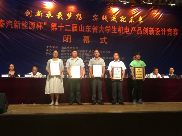 8月17日至20日,由山东省教育厅主办的第十二届山东省大学生机电产品创新设计竞赛决赛在烟台大学举行。我院参赛的11项作品全部获奖。其中《耕地起垄起穴一体花生半自动种地机》荣获一等奖,《汽车后视镜及观察窗除雾装置》等5个项目获二等奖,《扭力测试机》等5个项目获三等奖,苑章义老师获“优秀指导教师”,学院再度荣获“优秀组织单位”称号。