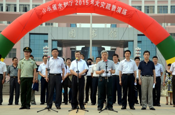 省水利厅副厅长尚梦平、省安监局综合处处长彭爱田、省水利厅建设处处长刘长军、日照市消防支队参谋长王程、省水利厅建设处副处长薛峰及厅直各单位分管安全生产的负责同志到场观摩指导。学院党委书记贾乃波主持本次演练活动。演练总指挥、学院院长于纪玉在演练开始前做动员讲话。