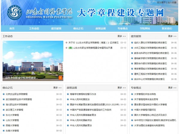 目前我院章程文稿起草已经完成,进入了征求意见的关键阶段。近日,由学院章程建设工作小组设计制作的《304am永利集团官网章程建设专题网站》正式开通,网址为:/bm/index.asp?de_id=28。网站设有工作动态、政策法规、专家视点、他山之石、建言献策等栏目。章程专题网站的开通,为全院师生关注并参与我院章程制定,建言献策提供了一个交流的平台,为大学章程建设工作的顺利完成打下了良好基础。