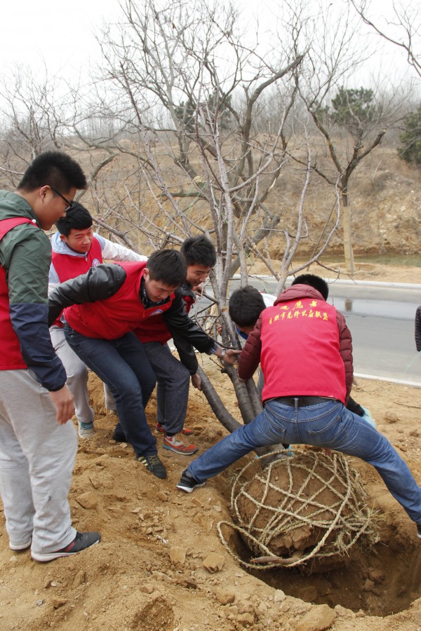 在植树现场,在专业技术人员的指导下,师生们抬树苗、挖树坑、培土、浇水,大家协作配合,干的热火朝天,在乍暖还寒的微风中,充分享受着植树的乐趣,用辛勤劳动播种下一片绿色和希望,以实际行动践行着习近平总书记“一代人接着一代人干下去,坚定不移爱绿植绿护绿”的号召。