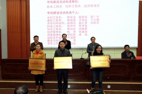 赵明阁在会上总结了我院2014年开展学风建设所取得的成绩,对在学风建设工作中做出不懈努力的全体教师表示感谢,并向受表彰的先进集体和先进个人表示祝贺。他强调,良好的学风是学院发展的根本,全体学工人员要充分认识学院学风建设面对的新形势,知难而上、攻坚克难,努力将学风建设提高到新水平。