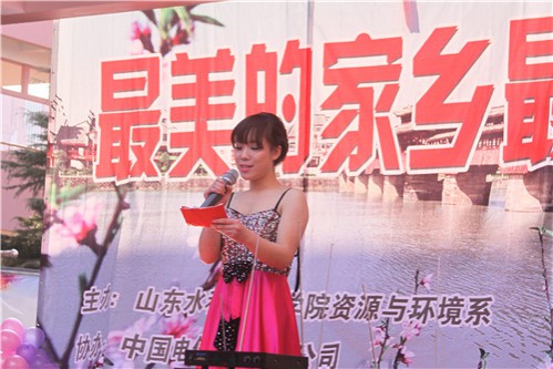 活动中同学们以才艺表演的方式,展示了家乡所特有的人文、习俗和美景。济南队的小品《上课》,以幽默风趣的方式为我们介绍了济南厚重的历史文化;青海队的同学们表演了歌舞《卓玛》,她们高亢嘹亮的歌声、悠扬唯美的舞蹈无不体现出浓浓的藏族风情;济宁队的《机器灵砍菜刀》把节目推向高潮,这首用济宁方言演唱的歌曲,充分表达了同学们对家乡济宁的热爱之情。此外,东北的缤纷雪景,青岛的激情奥帆,菏泽的飘香牡丹,烟台的广阔海滩……如一幅幅优美的画卷将祖国的大好河山展现在同学们眼前。
