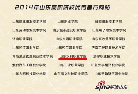 近日,新浪山东发起“2014年山东高校优秀新闻端评选”活动。经过数十位教育知名专家、社会知名人士的评议和近千封家长、学生的问卷调查,评选获奖名单新鲜出炉,我院网站获评2014年山东高职院校优秀官方网站。