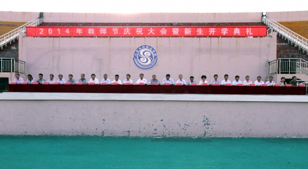 9月10日下午,我院在体育场隆重举行第30个教师节庆祝大会暨2014级新生开学典礼。学院领导和各部门负责同志出席会议并在主席台就坐,全体教职工和4300多名2014级新生参加了庆祝大会。大会由学院党委书记贾乃波主持。