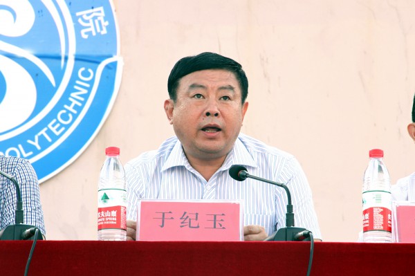 在雄壮的国歌声中庆祝大会拉开了序幕。学院院长于纪玉在大会上讲话。于纪玉首先代表学院对辛勤奋战在教育教学第一线、无私奉献的广大教职员工致以节日的问候,向受到表彰的山东省优秀教师、师表奖获得者、优秀辅导员和班主任表示祝贺,对2014级新同学的到来表示热烈的欢迎,并分别向全体教师和2014级新同学提出了几点希望。他希望老师们要明师者之志、修师者之德、练师者之才,争做德技双馨的优秀教师;希望同学们要做一个“品德高尚的人”、一个“刻苦钻研的人”、一个“勤奋实干的人”、一个“敢于担当的人”,努力把自己锻造成为社会需要的有用之才。