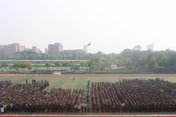 9月20日上午,我院2014级学生军训汇报表演暨总结表彰大会在田径运动场举行。学院党委副书记赵明阁、学生工作处及各系部负责人出席了本次活动。