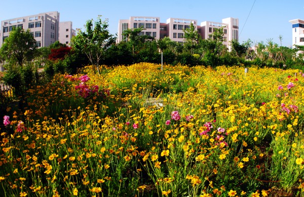 漫步校园,曲径通幽。休闲花园内,紫藤茂密;海济路旁,梧桐参天;校训石侧,冬青环绕;礼汇路上,苍翠欲滴;教学楼前,玉兰婀娜……一眼望去,校园内龙柏葱郁,棕榈苍劲,青松掩映,绿辉交错。或有鸟儿悦耳的鸣叫,或有学子朗朗的诵读。亦静亦动,自然天合,浑然一体。