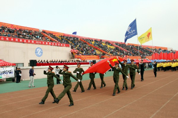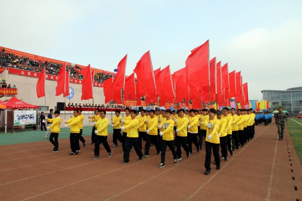 4月25日上午7点30分,伴随着激昂的运动员进行曲,国旗护卫队、红旗队、彩旗队以及运动员们相继入场。在庄严的升国旗仪式之后,院长于纪玉为本次运动会致开幕词,裁判员、运动员分别宣誓。全体人员观看了精彩的团体操表演。最后,党委书记贾乃波宣布运动会开幕,我院2014年春季田径运动会正式拉开帷幕。
