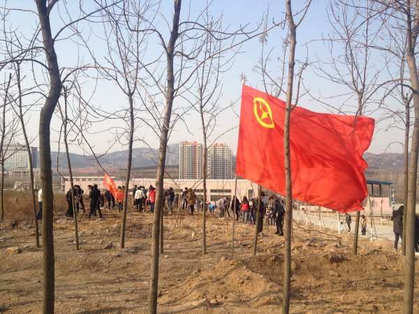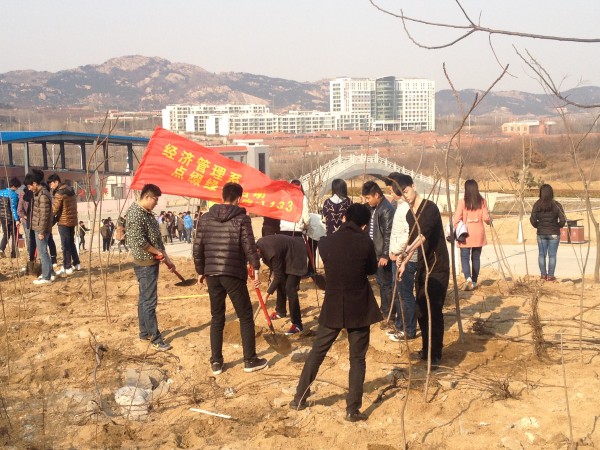 活动过程中同学们积极参加,个个热情高涨,手持大揪、水桶等工具,相互配合,认真做好挖坑、放苗、培土、浇水工作,完成一棵棵生命的培育。同学们齐心协力,不怕脏、不怕累,劳动的现场处处回荡着同学们的欢声笑语,栽下一株株幼小的树苗同时,也为学院增添了一抹绿色,更在这里栽下了绿色的希望和生态环保的种子。经过三天紧张的劳动,同学们种植了百余棵树苗,错落有致、迎风而立,焕发出盎然生机。