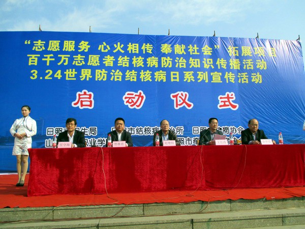 启动仪式上,山东省结防中心宣教科主任、学会办主任王仕昌,日照市卫生局副局长佘华亮分别讲话。学院纪委书记贾维忠致欢迎词并总结学校预防结核病相关工作。我院志愿者代表宣读了倡议书。