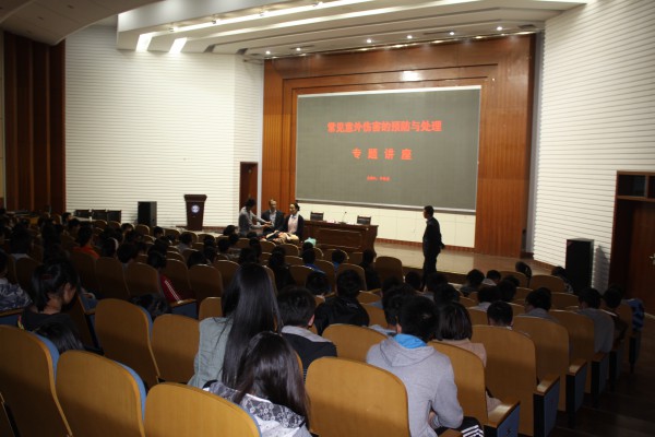 为了增强运动员在训练和比赛过程中的安全意识,提高运动损伤的应对能力,我院于4月18日下午,在学术报告厅举办了《常见意外伤害的预防与处理》专题知识讲座。本次讲座由秦楼社区卫生服务中心副主任医师牟会善主讲。全院各班级体育委员、教导大队成员及院运动队的全体学生参加了本次讲座。