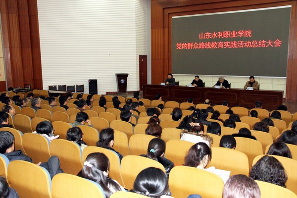 2月28日上午,我院召开了党的群众路线教育实践活动总结大会。学院党委书记贾乃波主持会议并作总结报告。省水利厅第六督导组组长、副厅长徐章文,第六督导组副组长、厅科外处处长张曼志,第六督导组成员朱汉明到会指导。学院领导班子成员及全体教职工参加了会议。