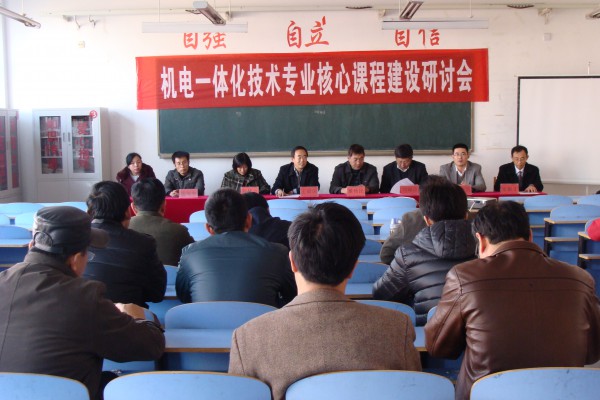 为进一步推进名校建设,突破课程建设瓶颈,探索专业核心课程建设的新思路、新方法,12月6日,我院机电一体化技术专业核心课程建设研讨会在2219举行。山东科技职业学院教务中心主任、省级教学资源库负责人董传民,机电工程系主任李兴凯,机电专业负责人张桂云,机电专业核心课程负责人杨林;日照职业技术学院数控装备专业负责人、省级资源库负责人张华中;豪迈科技股份有限公司有关技术负责人以及我院副院长王启田、教务与科研处处长刘福臣和机电工程系全体老师参加了此次研讨会。