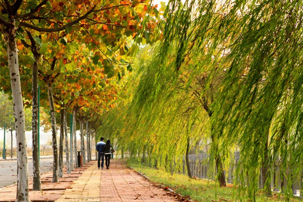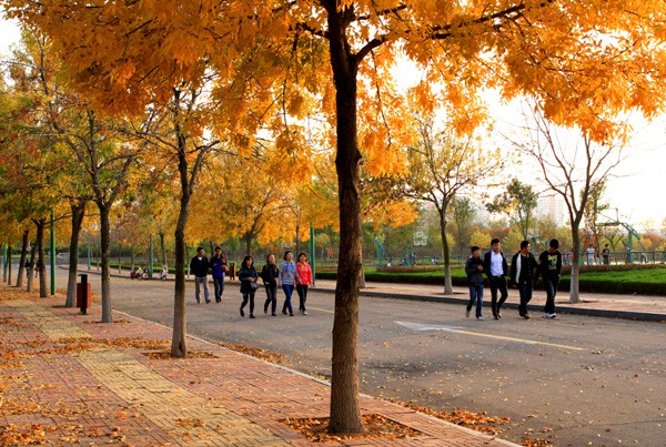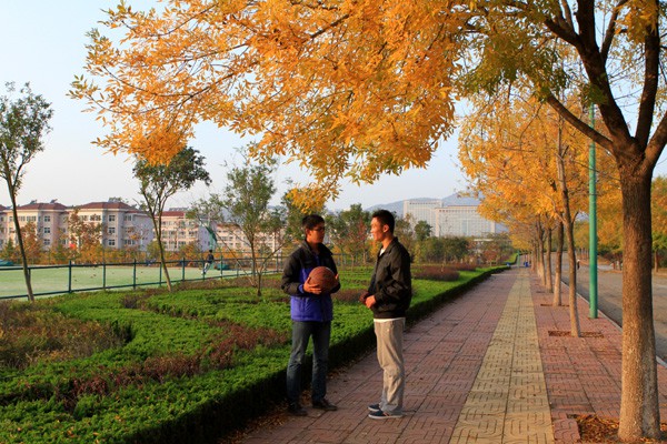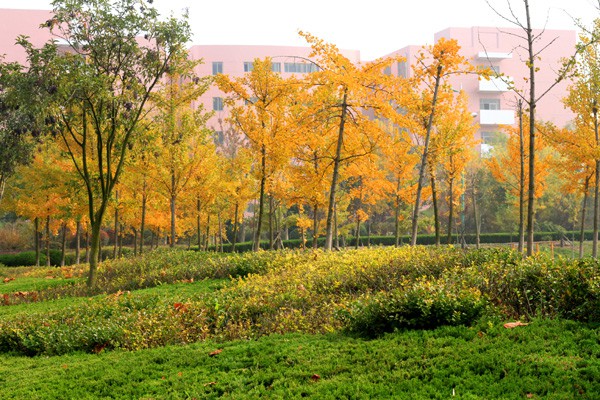 11月2日,随着天气的转冷,学院校园内的树叶逐渐发黄,在阳光的照射下,满眼金黄,分外妖娆,美不胜收,构成了校园中一幅幅靓丽的秋景画面。