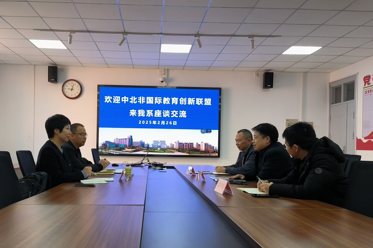 孙玉琢对王锐一行的到来表示热烈欢迎,并简要介绍了我校在中外合作办学和国际标准输出方面取得的成果。王锐介绍了中北非国际教育创新联盟在国际合作办学、人才联合培养及对外培训等方面的业务开展情况。