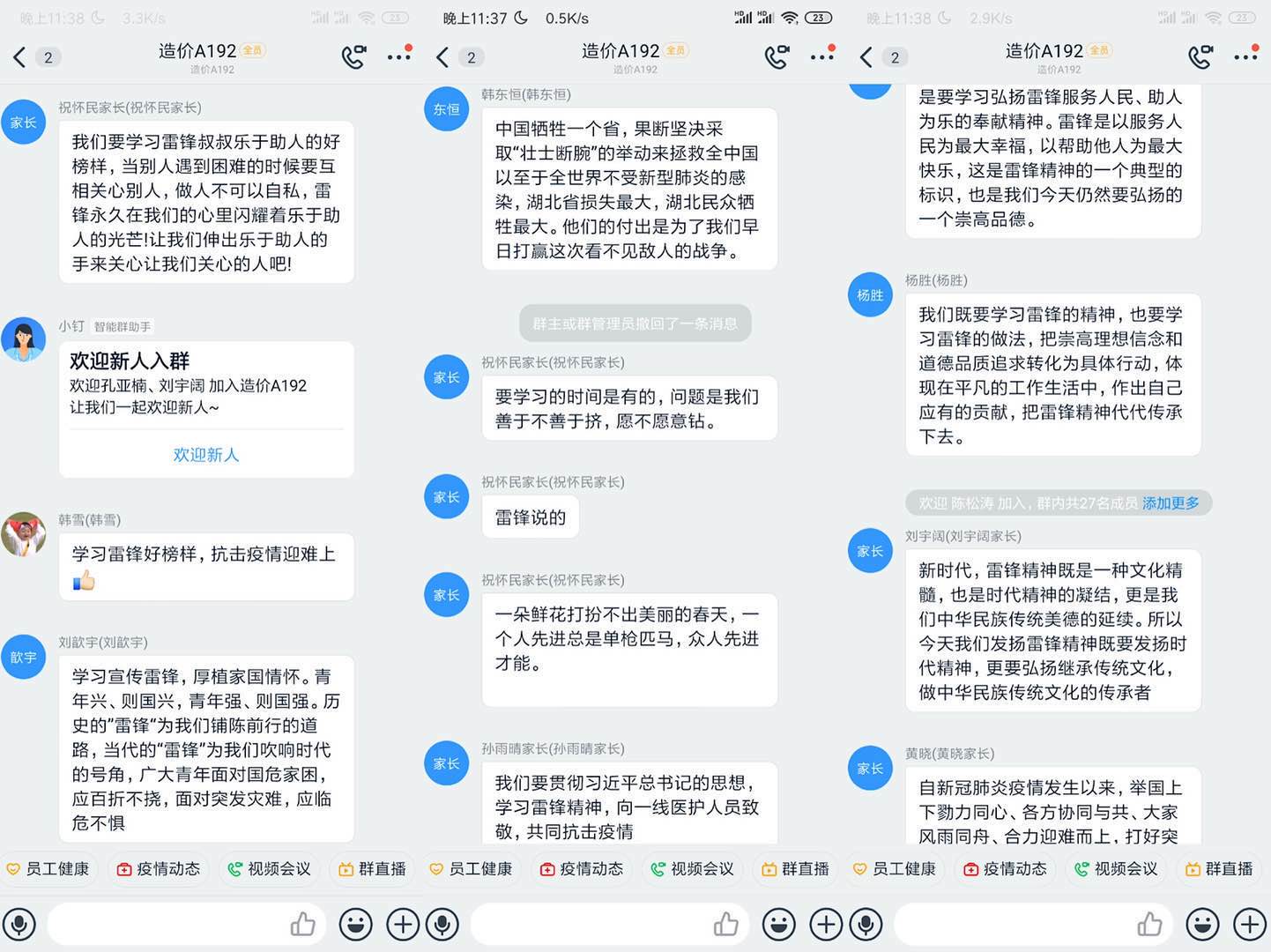 本次主题班会为线上开展。活动期间,各班班长带领大家线上学习,通过QQ、钉钉等平台组织班会,活动过程中同学们积极分享自己的所见所得,讲述一线人员在此次疫情中的感人事迹。参加基层抗疫的同学也与大家分享了自己的亲身经历。