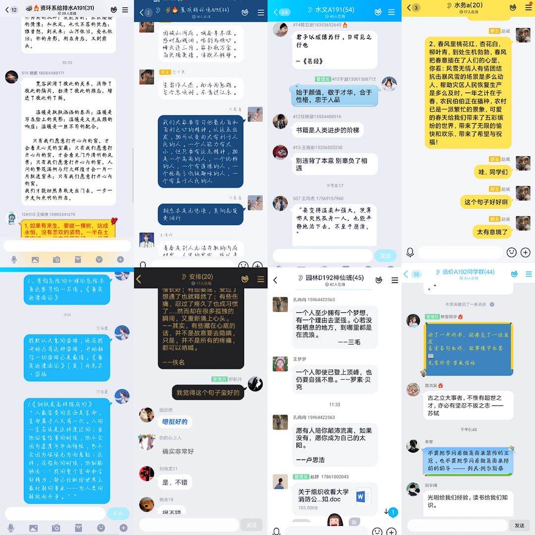 此次活动由系部统一安排布置活动内容,从“读百家箴言”和“摘礼仪佳句”两个方向出发,利用周四下午政治学习的时间开展活动。活动以班级为单位,2019级全体同学共同参与。同学们热情高涨,积极参与其中,在阅读经典著作中更新观念,活跃思维,开拓视野,让经典在心中流传,让书香与人生相伴。通过QQ群、微信群等形式分享读书心得,实现资源共享。为了让每位学生浸润在中华经典文化的同时,进一步提升学生的文明礼仪素养,活动期间,系部安排同学围绕文明礼仪、传统美德以及弘扬良好道德风尚等内容,认真学习与摘抄关于文明礼仪的精美文章,让文明礼仪得到了进一步弘扬。