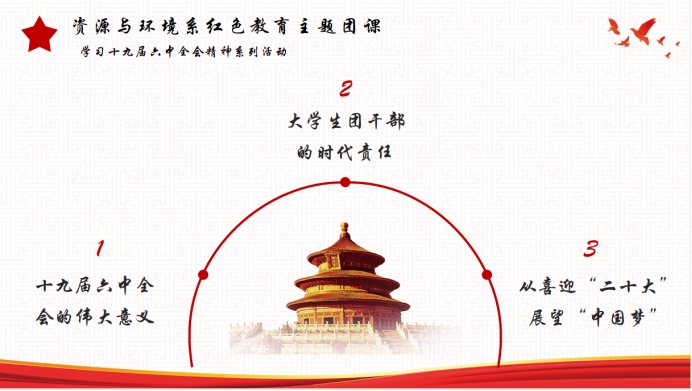 饮水思源,初心不忘,为进一步深入领悟十九届六中全会精神,做好青年大学生的思想引领工作,近期,资源与环境系开展了“学习十九届六中全会精神”主题团课活动。