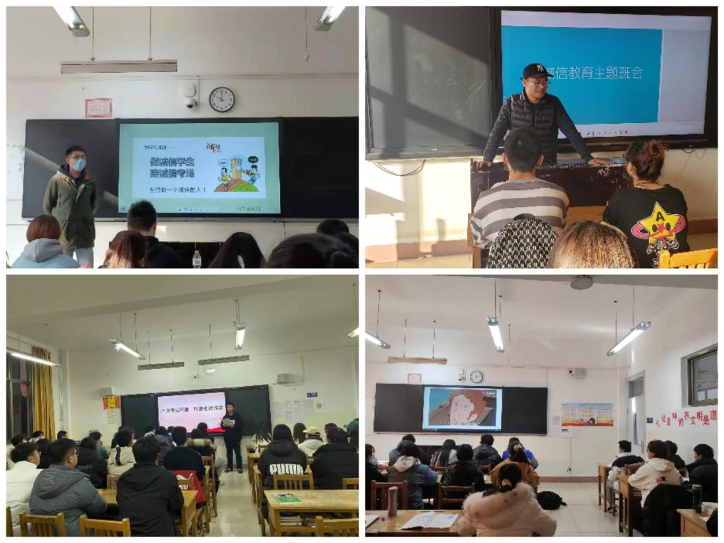 四、召开一次“诚信考试,诚信做人”主题班会。各班班主任结合社会主义核心价值观、考风考纪相关文件、诚信教育宣传片开展主题班会,鼓励同学们要把道德原则和道德规范内化于心外化于行,让诚信常驻心中。