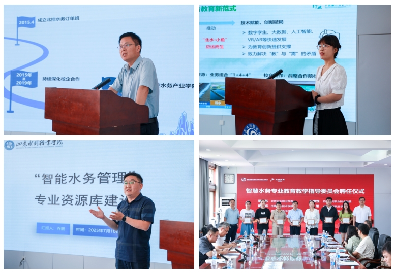 会上,校企双方颁发智慧水务专业教育教学指导委员会聘书。此外,各院校针对“水务智能化工程”专业申报材料展开研讨。多位专家就课程设置、教学资源整合、实践教学体系构建等方面提出了自己的见解和建议,为该专业申报提供明确的方向指引和策略支持。