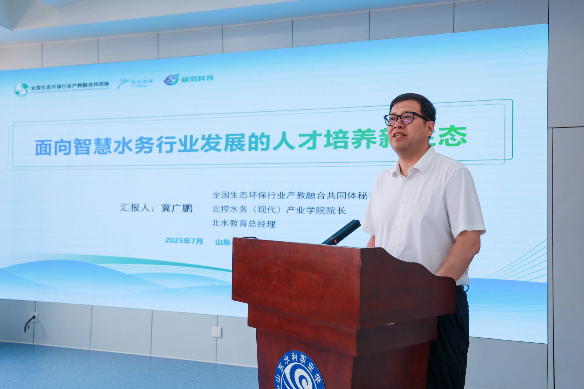 主旨报告环节,冀广鹏从政策、行业、发展、未来、携手5个维度,结合生态环保行业面临的深刻变革对技术和人才的需求,提出未来新水务发展对人才培养的要求。
