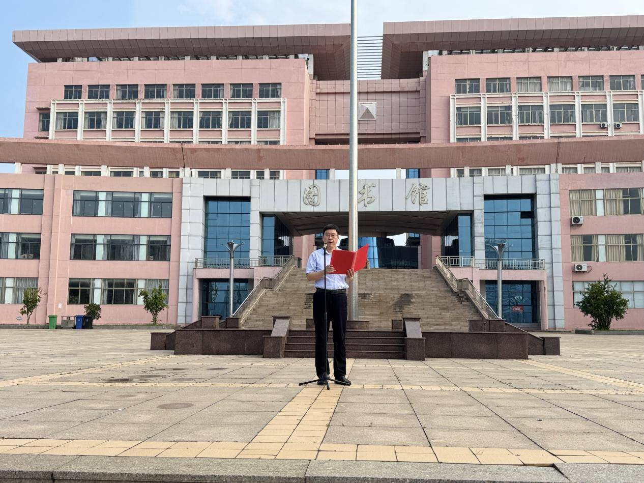 升旗仪式上,崔灵智作国旗下讲话。他指出,今年是中国人民抗日战争暨世界反法西斯战争胜利80周年,要从伟大的抗战精神中汲取力量,勉励同学们心怀家国、勤学笃行、坚韧不拔,将个人理想融入民族复兴的伟大事业。同时,他对同学们提出殷切希望:心怀家国,志存高远。将个人的理想追求,主动融入国家发展和民族复兴的伟大事业中。勤学笃行,练就本领。刻苦锤炼实践技能,让勤奋学习成为青春远航的动力,让增长本领成为青春搏击的能量。坚韧不拔,勇于担当。保持乐观与坚韧,敢于面对挑战,勇于战胜困难,在攻坚克难中追逐梦想。