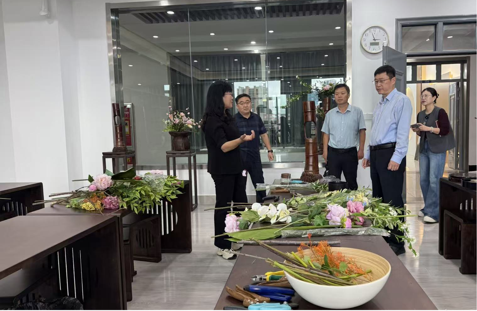 会后,与会人员参观了新建的植物组织培养实验室和传统插花非遗传承创新工作室。